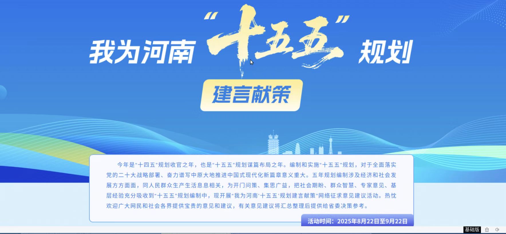 關于開展“我為河南‘十五五’規劃建言獻策”網絡征求意見建議活動的公告